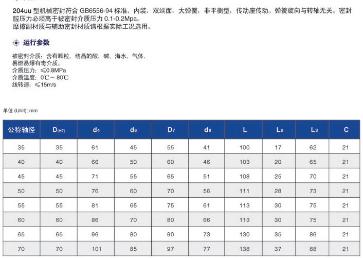 Model 204UU mechanical seal